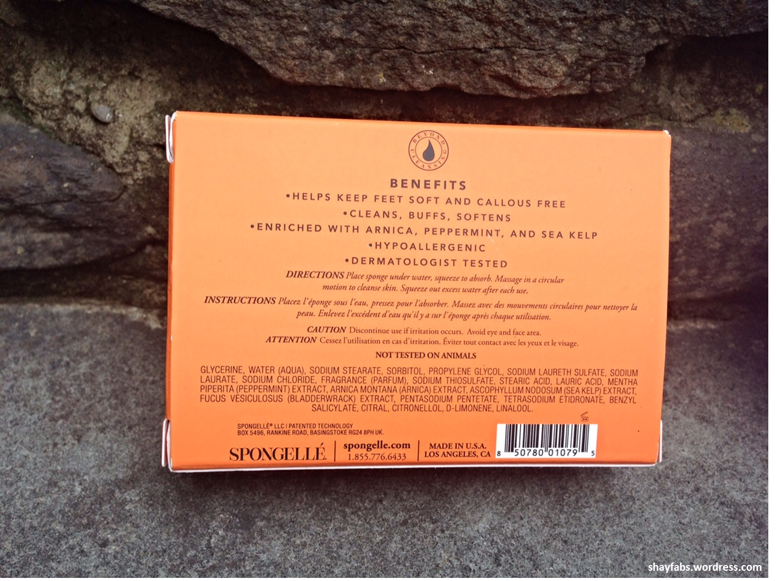 The two products I received from Spongellé were the Boxed Flower Body Buffer in the French Lavender scent and the Pedi Buffer in the Mandarin Mint scent. When I first opened the box they were delivered in, fantastic aromas filled the air. The smell of lavender was the strongest and it instantly took my breath away. Both products came in perfectly packaged boxes (one of the boxes came in my fav pink color!) and the buffers themselves were wrapped in plastic.