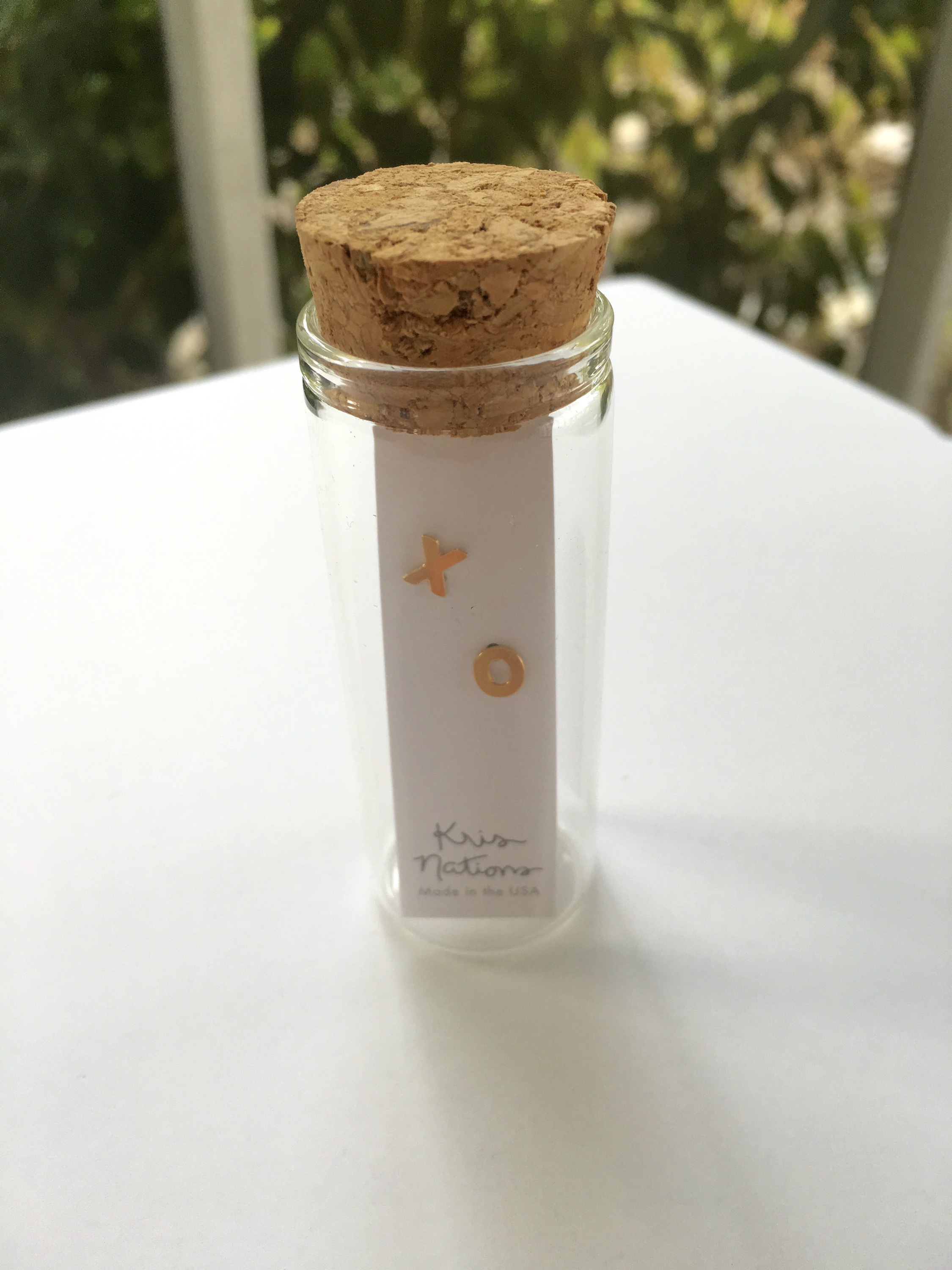 Kris Nations XO Stud Earrings (valued at $35). How super adorbs are these earrings? These earrings are handmade in California and are made of recycled brass with 14K gold overlay and surgical steel posts. Not only are they cute but they will not irritate my pierced ears (I am allergic to certain metals like nickel).