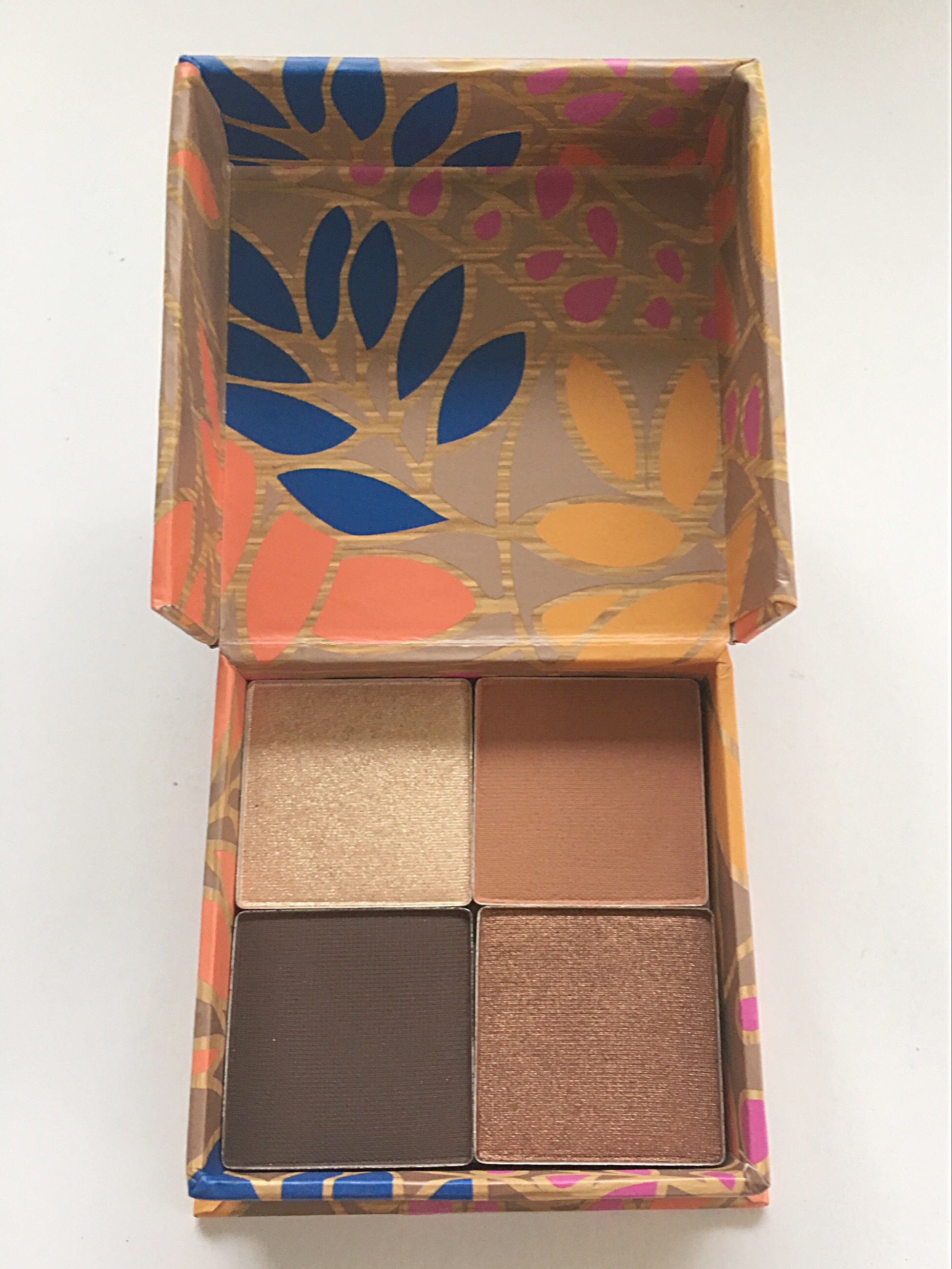 2) Tarte Cosmetics – Beauty & the Box Eye Shadow (valued at $22). This is my favorite item in the box! This eye shadow quad has 2 shimmers and 2 matte colors. The warm tones are perfect for the Fall but can also be used for everyday looks. These eye shadows are nicely pigmented and can be built up (swatches below).