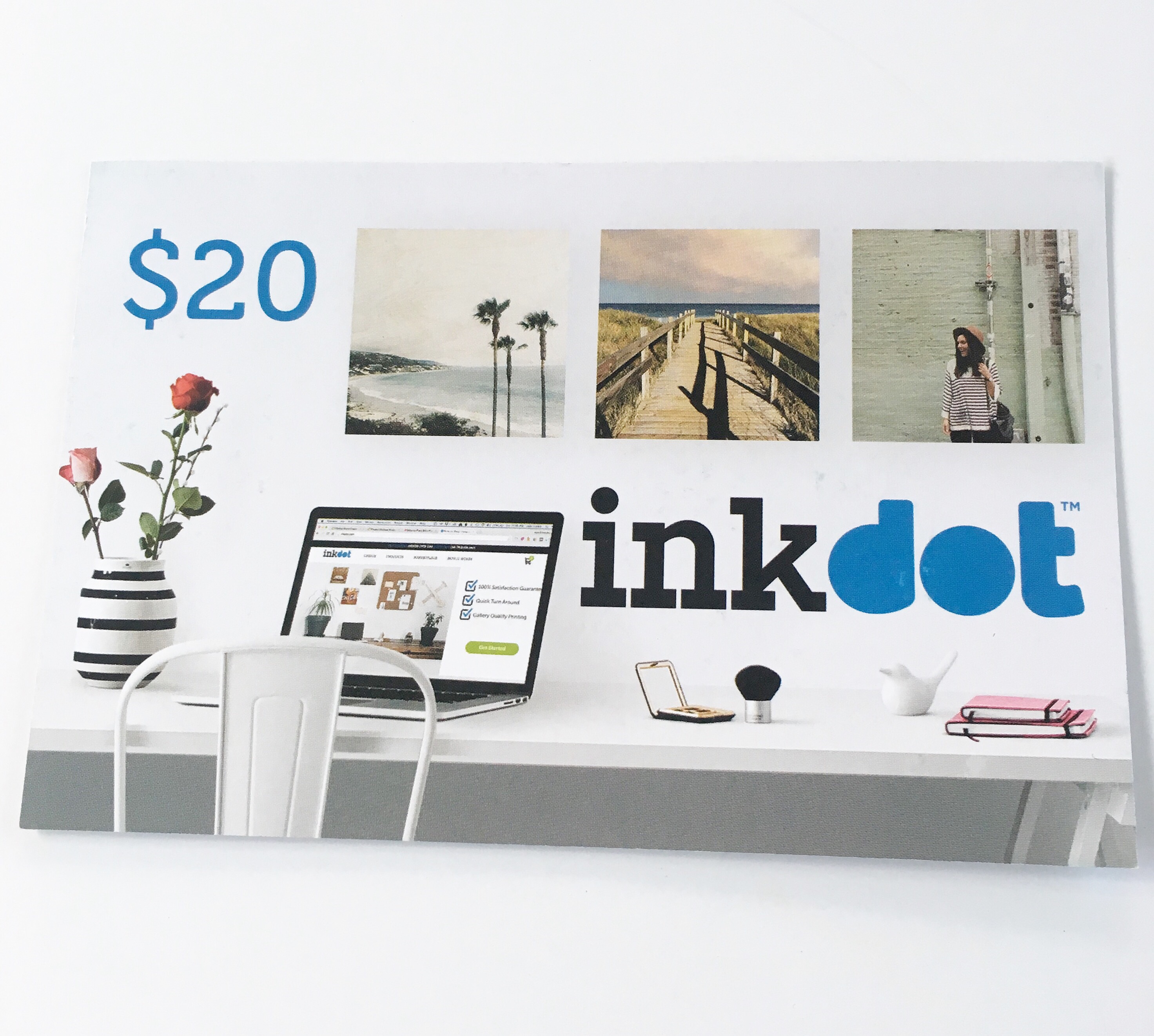 7) Inkdot Gift Card (valued at $20). Inkdot is a service that turns your digital photos into prints, coasters, tote bags, iPhone cases, and more. You can create a personalized item for yourself or to gift to someone over the holidays.