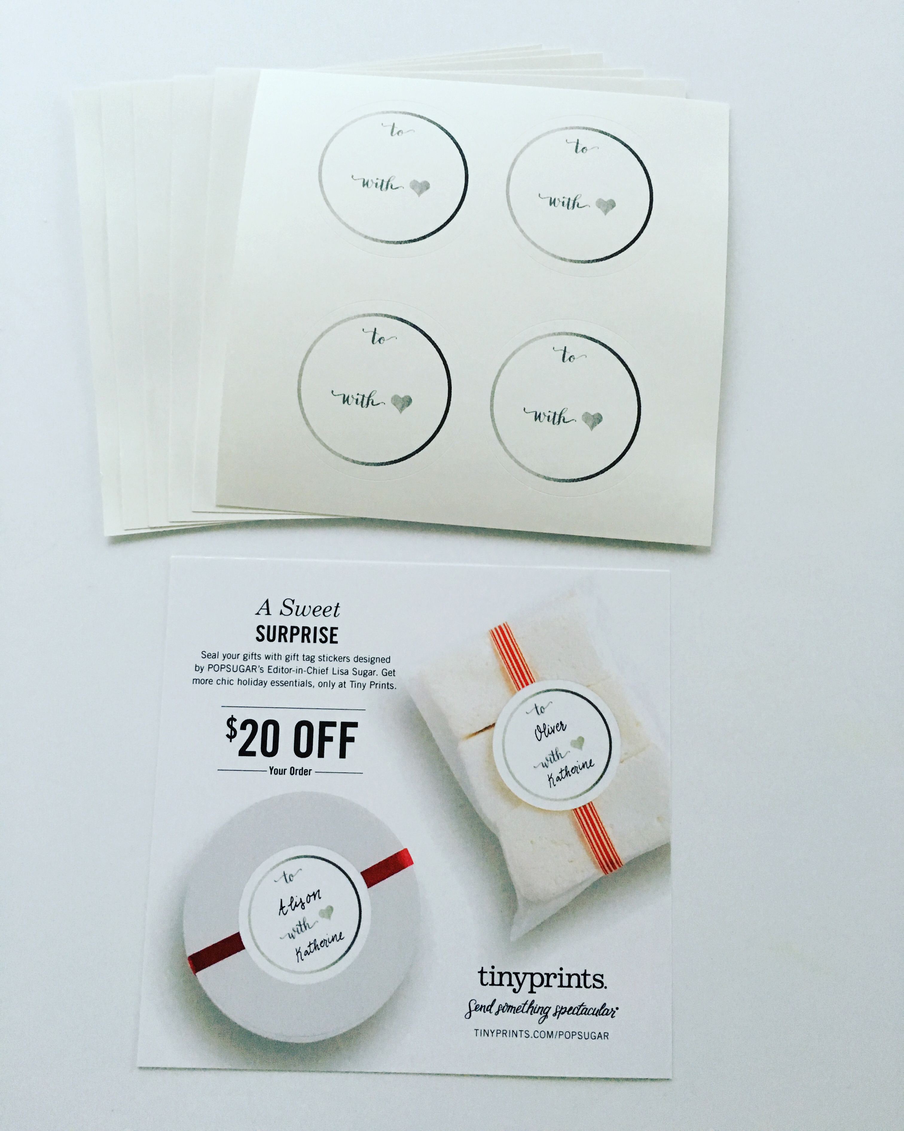7) Gift Tag Stickers + $20 Promo Card by Tiny Prints (valued at $20). I can always use gift tag stickers for gifts and these are really cute plus you get a $20 coupon off your tinyprints.com order.
