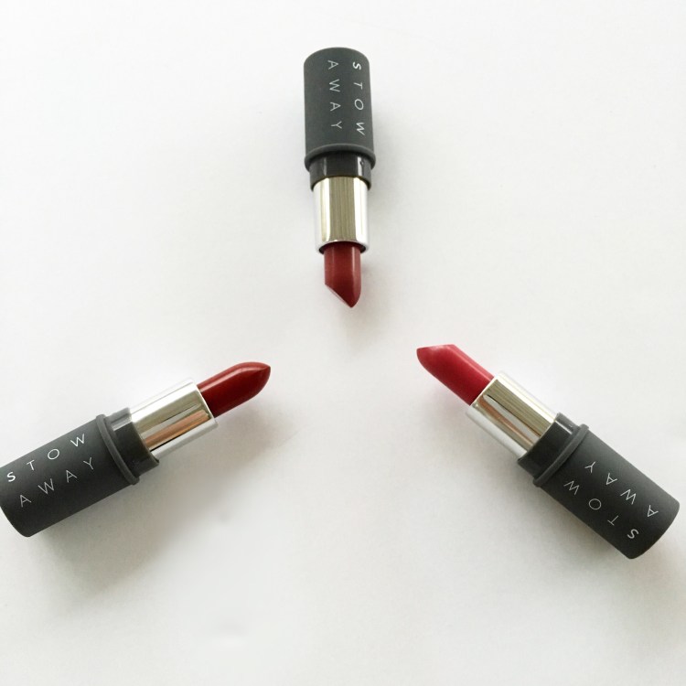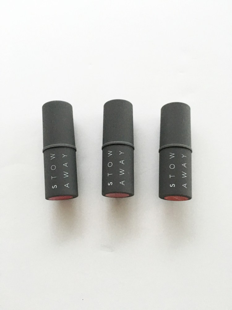 1) Crème Lipstick Trio by Stowaway Cosmetics (valued at $30). Stowaway Cosmetics is a new makeup brand that launched earlier this year. Their philosophy is “that makeup should be designed to go wherever women go.” While their products are intentionally smaller than your average products, beautifully packaged in a minimalist and portable way, you still get plenty of product with the added benefit of saving real estate in your makeup bag or purse. In fact, each of the lipsticks in this trio are smaller than your pinky finger. Perfect for fitting in a cute clutch bag! The colors included in this trio are cranberry (red), muted plum (plum mauve), and raspberry (pink). These lipsticks are highly pigmented, long wearing and creamy. I used one swipe in my swatch below.