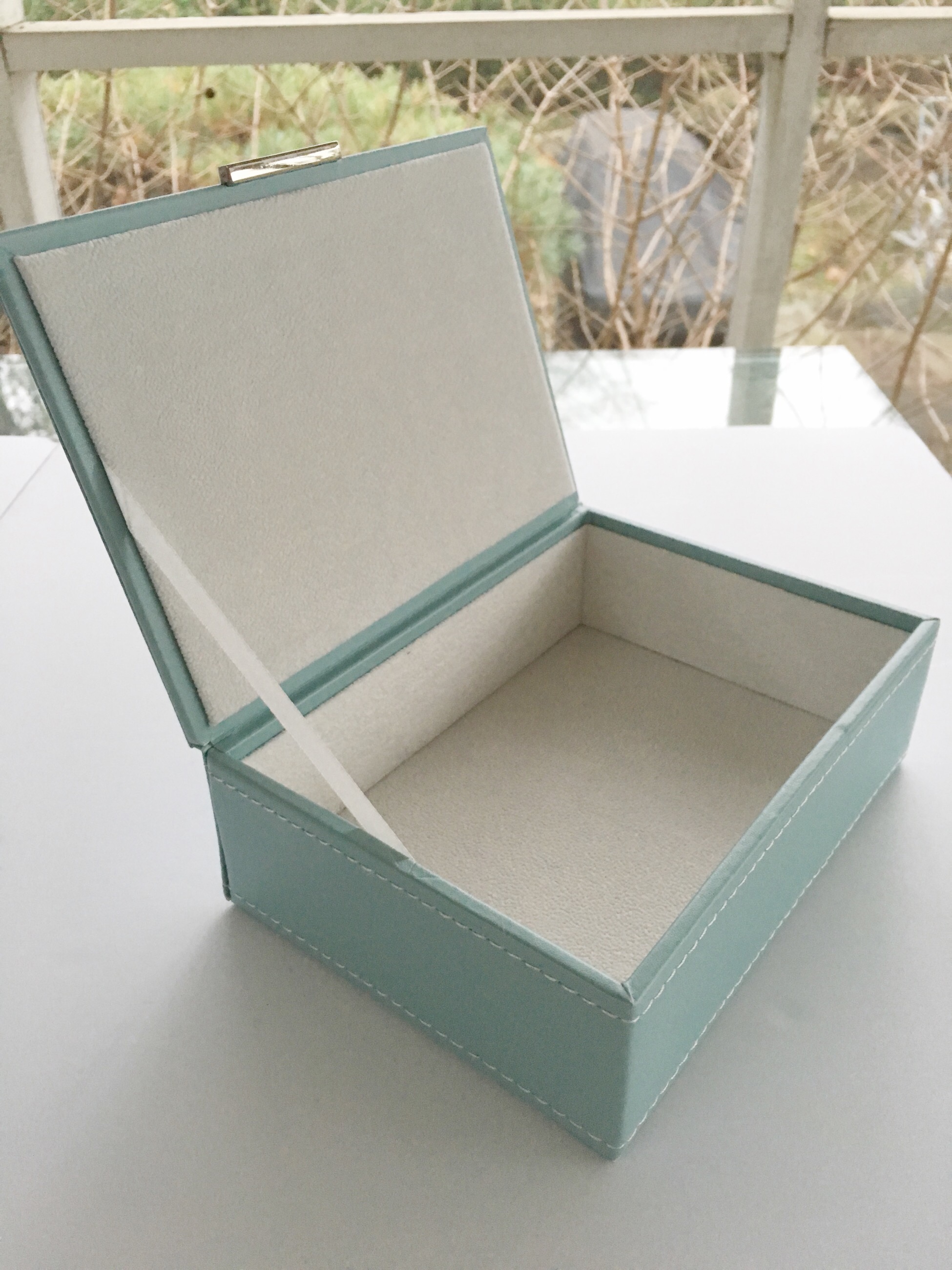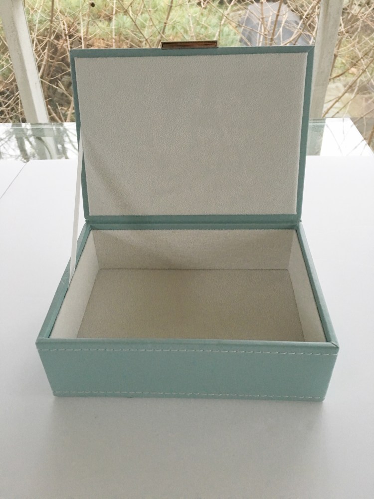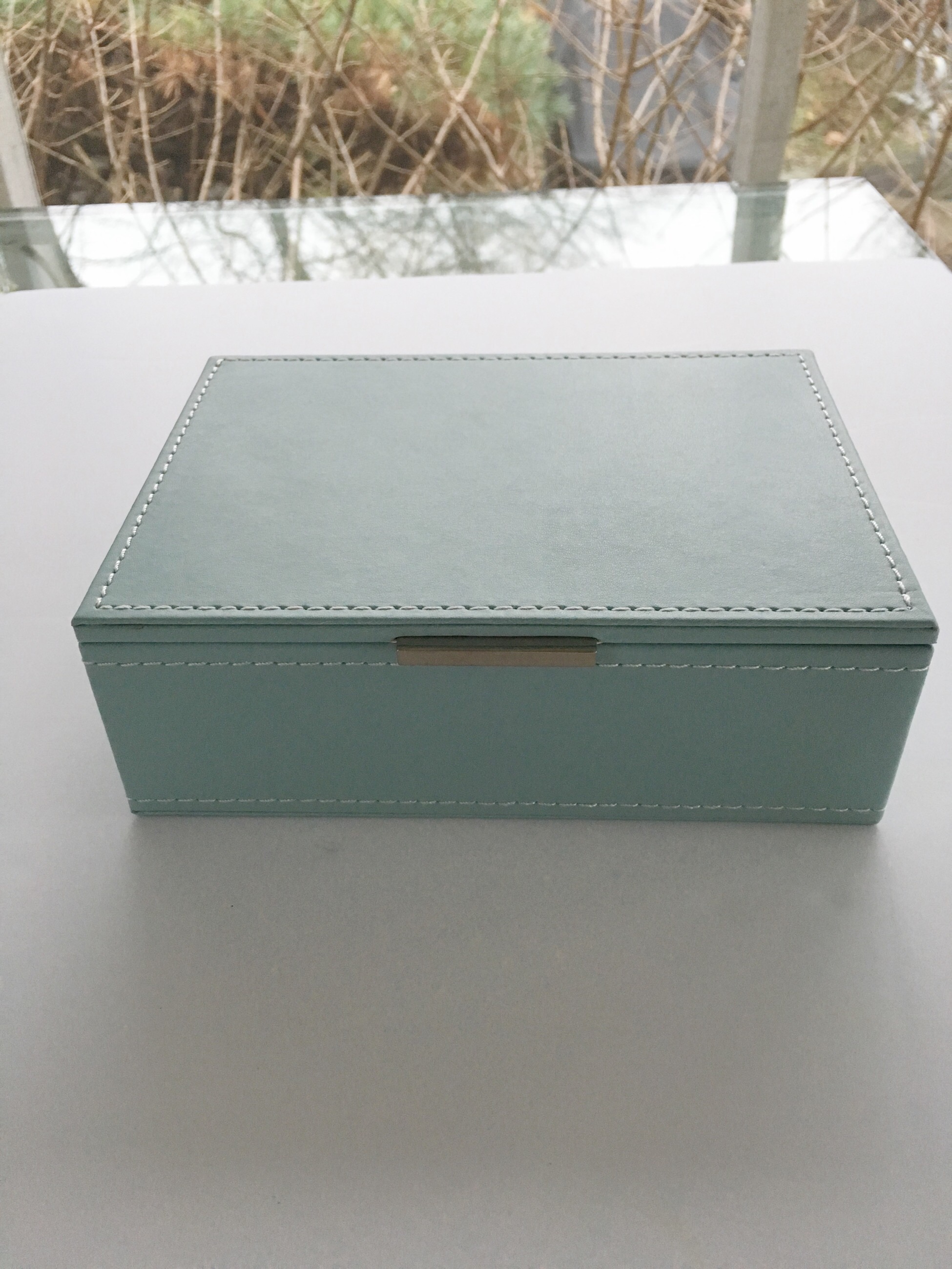 4) Blue Mist Jewelry Box by Swing Design Nova (valued at $36). This is a blue leatherette stitched jewelry box with suede interior. Such a sleek looking jewelry box. If only I didn’t already own a massive jewelry box! I guess I’ll need to buy more jewelry to fill this puppy up.